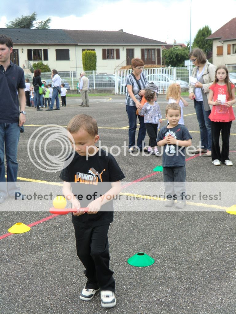 | Alex's class sang two songs, one in German and the other in French. It's funny, Alex is still singing it, he sang it on the way to school today. He's in the black t-shirt with the orange 'Puma' logo. |