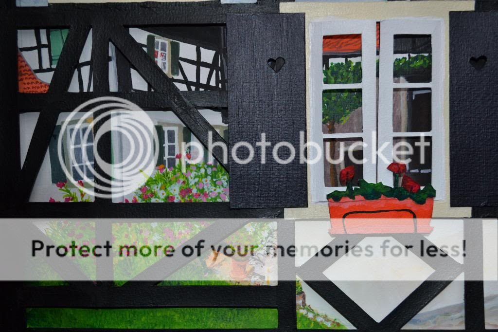 | I just finished this larger watercolour & acrylic painting. It is for a friend, who lives in a beautiful typical Alsatian farm house. This is the background layer. |